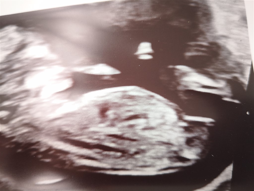 Kantar123 skriver: Man kan desværre ikke se nubben. Den er gemt bag navlestrengen. Men jeg hælder til dreng, hvis jeg skal give et bud. Har du andre billeder?