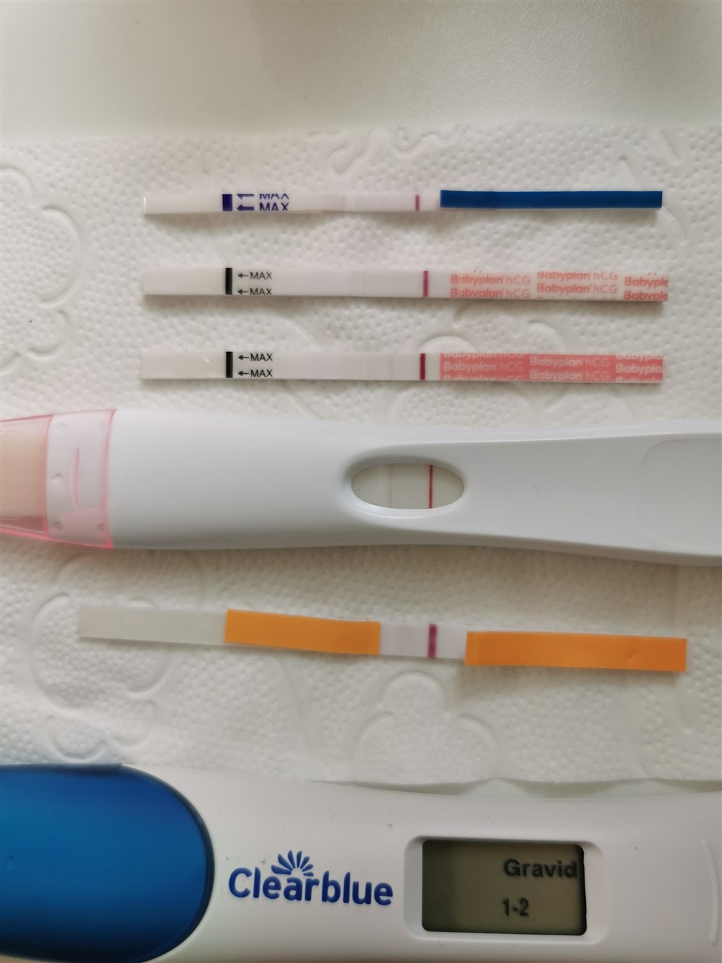 Jeg testede også tidligt positivt. Billedet med den svage test er 2+6, med flere teste 3+0 og sidste i går 4+1.