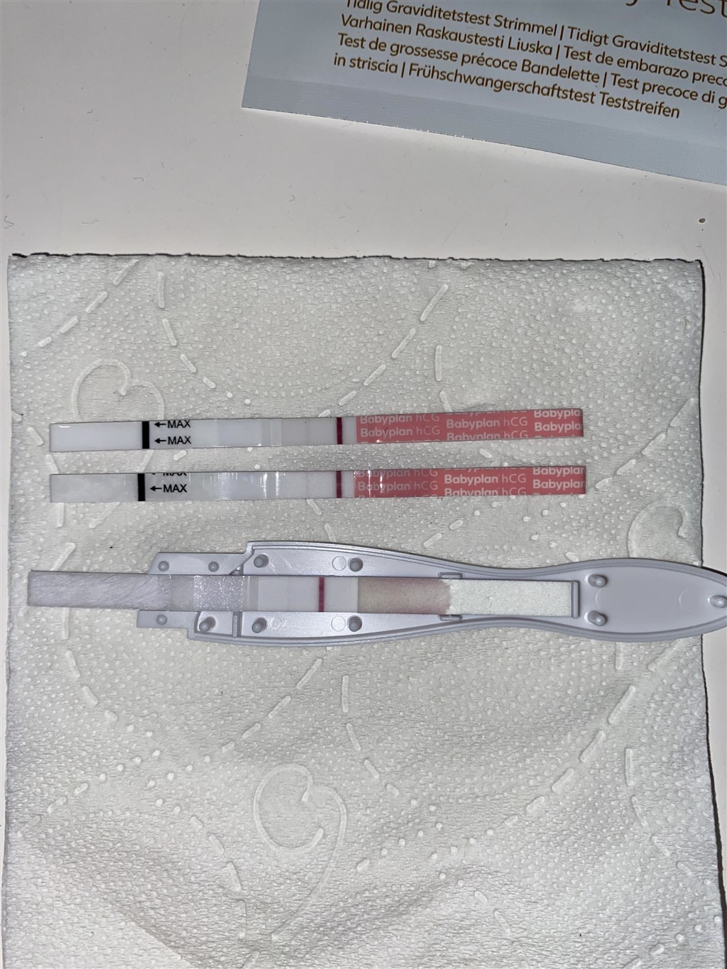 mine test har også svinget lidt i hvor tydelige de er. Det nemmeste er hvis man testet hver anden dag med morgen urin, så kan man tydeligt se at stregen bliver mere lyserød