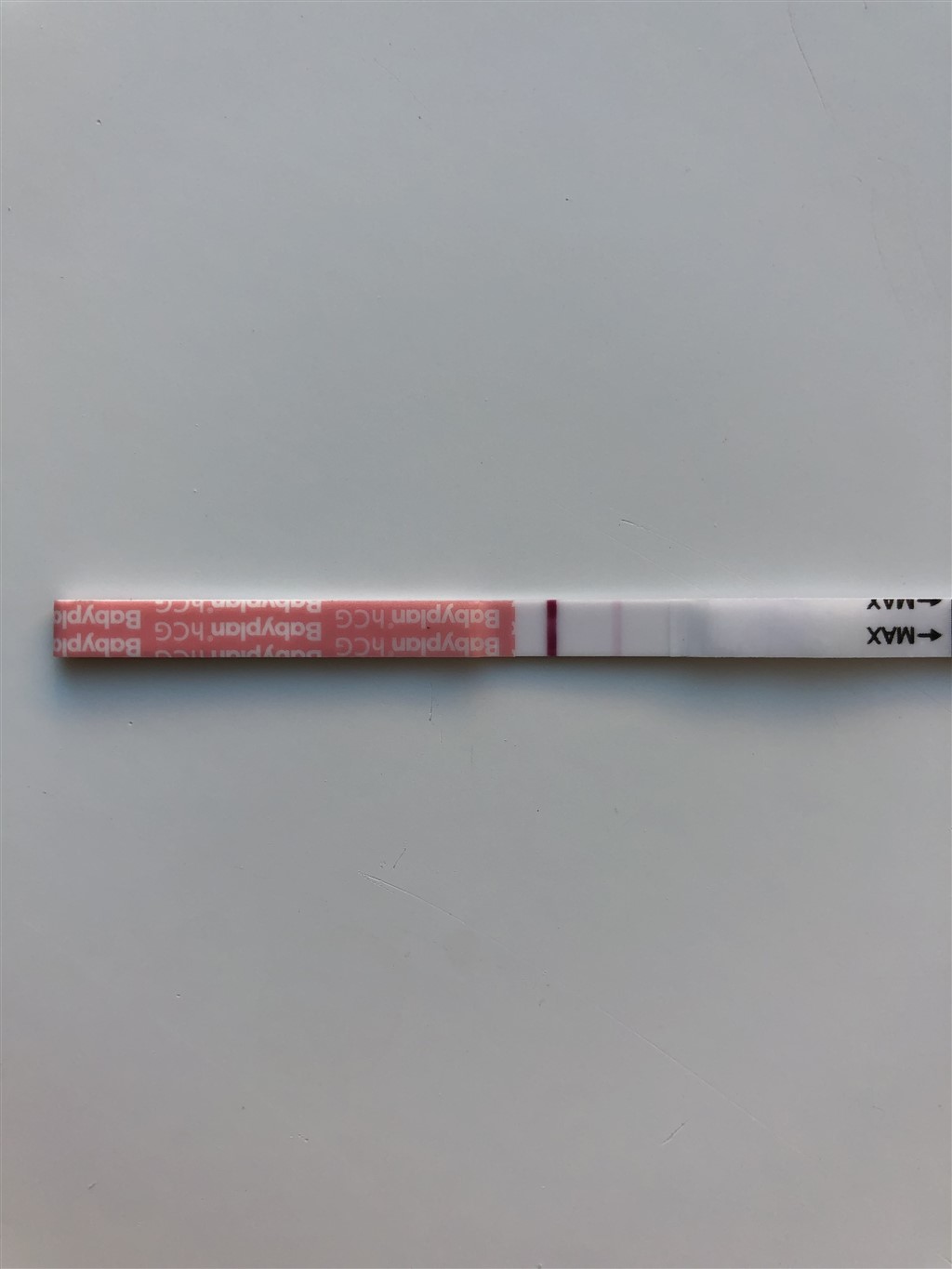 Vil lige sige, at sidst jeg var gravid testede jeg svagt positiv. Dagen efter negativ og så ventede jeg faktisk to dage og så var den mega positiv.