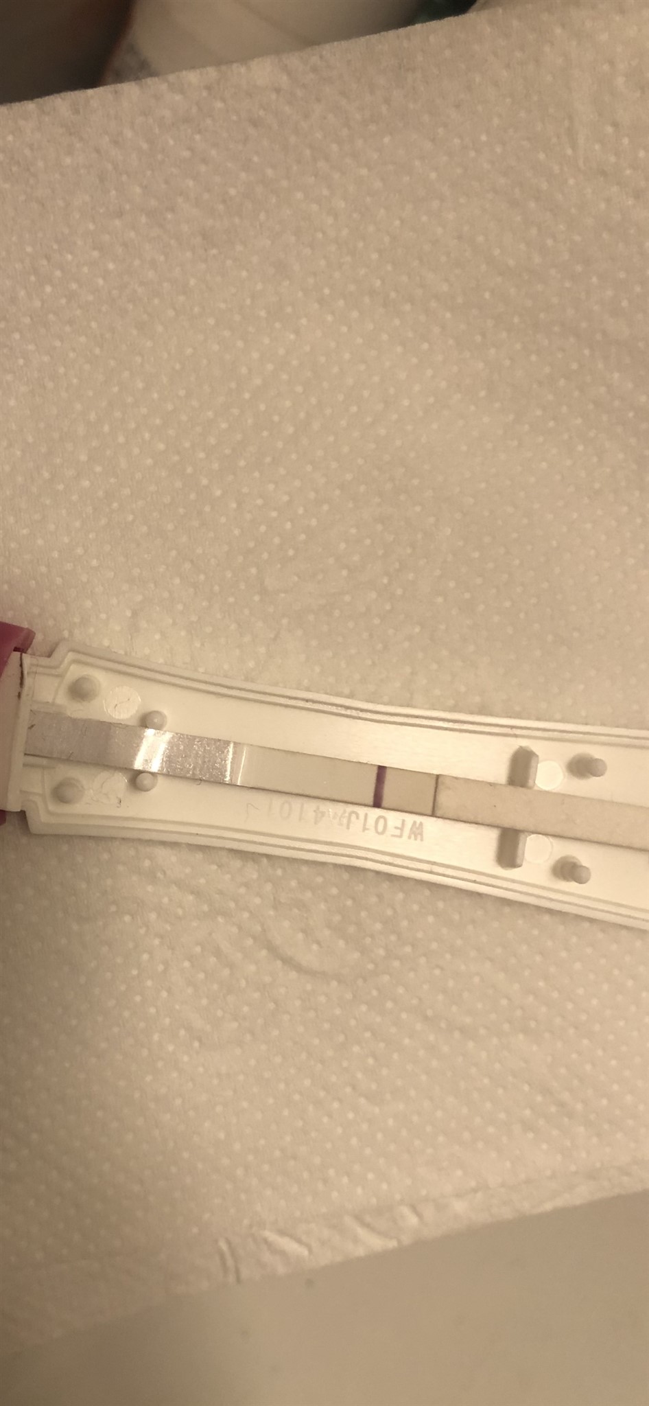 Jeg kan se en meget svag skygge. Men testen ser nu også ud til at have lagt end mere end de 3 min som der står på valmed pakken. Ses ret tydeligt at den er helt "tørret ind" så det er ikke en frisk test du har taget af billede af.