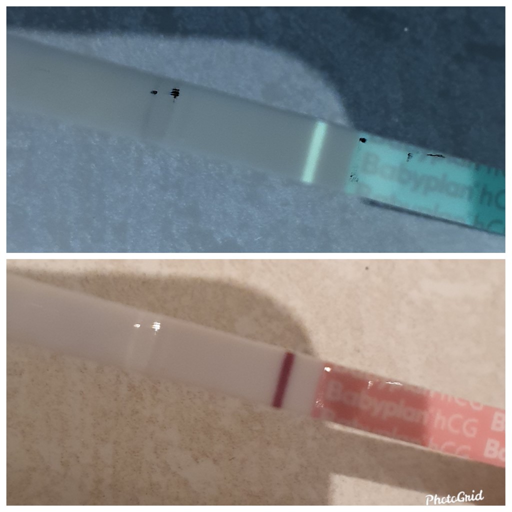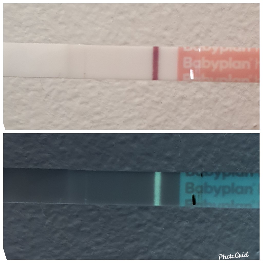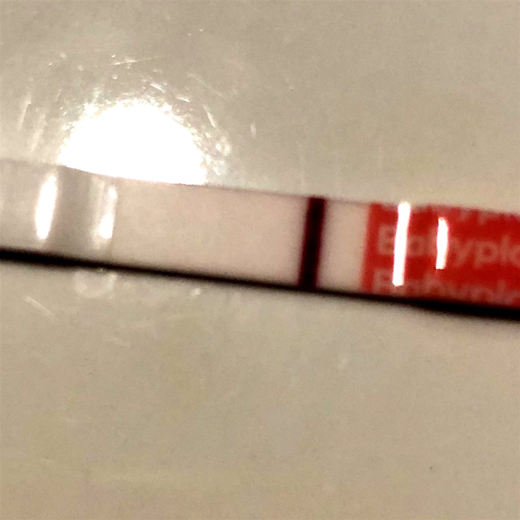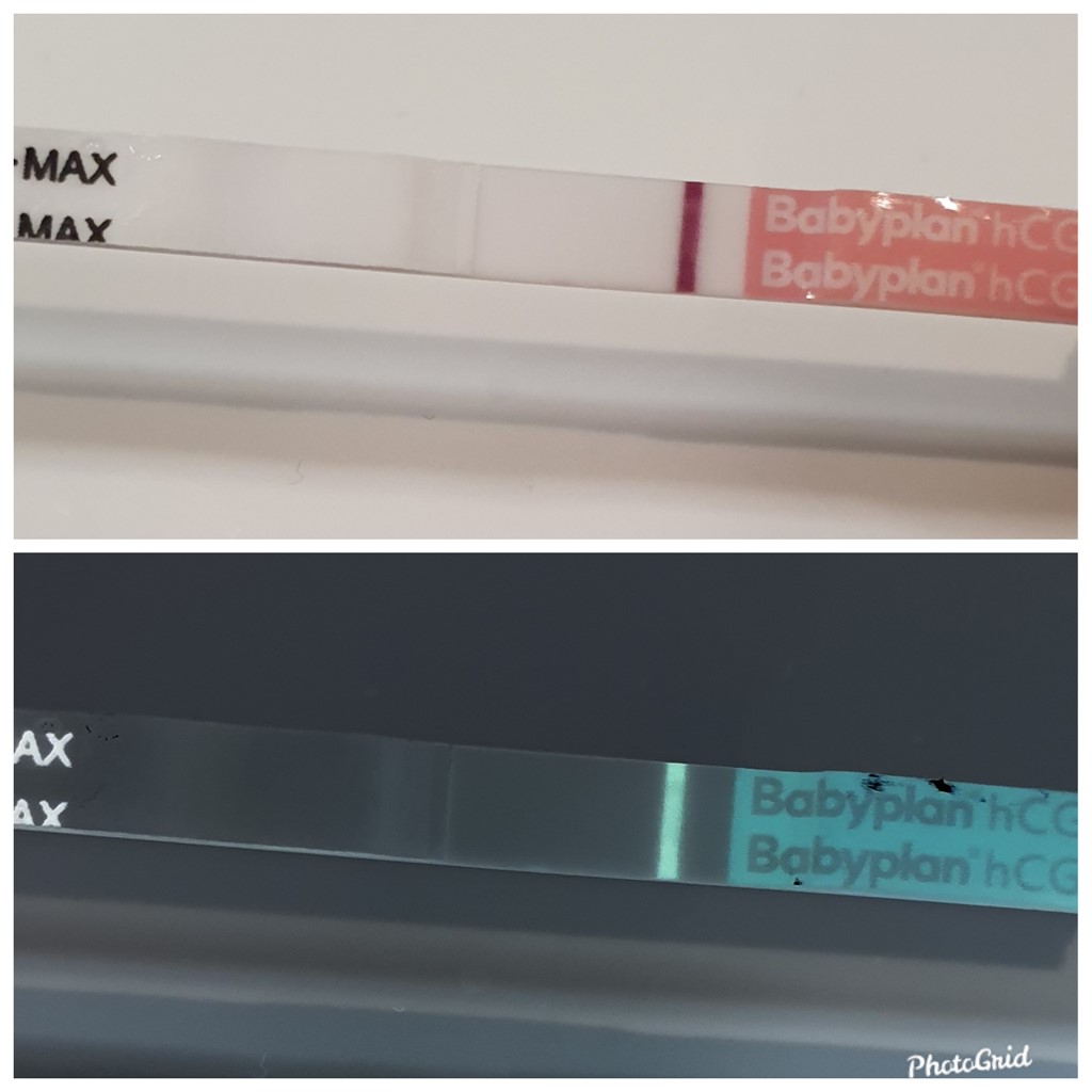 Jeg tror måske din test er defekt af en art? Meget mærkeligt. Mine ser kun sådan ud, når jeg har tisset med meget koncentreret urin og de har ligget længe - altså med den mørke, falmede teststreg og urinfarven i kanterne. Så hvis billedet er taget indenfor tid, så tror jeg helt bestemt den er defekt. Bemærk de andre billeder - fx fra soulaima, som er helt klare og hvide i farverne.