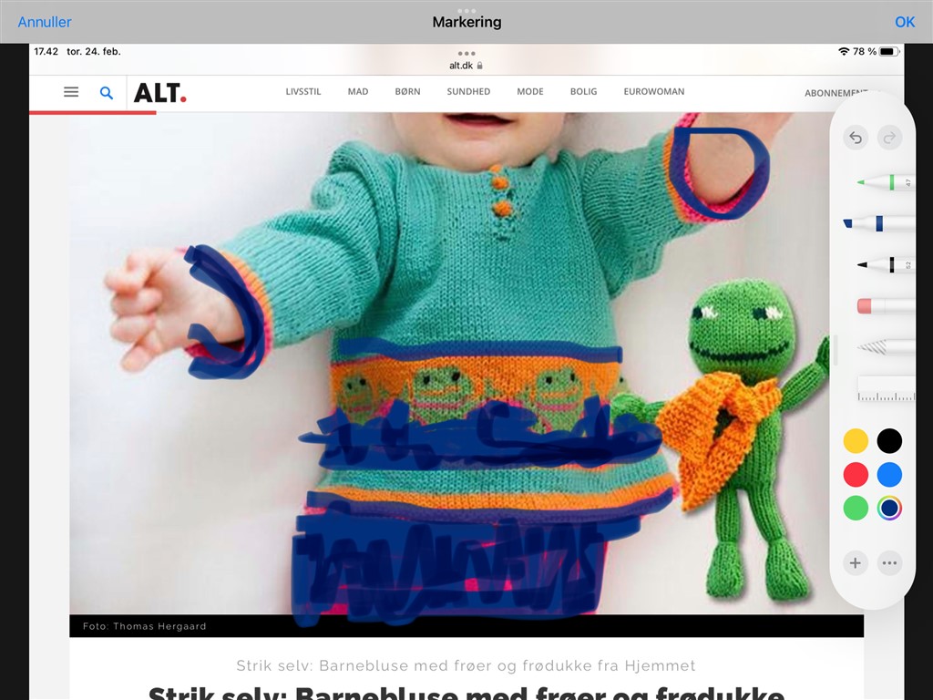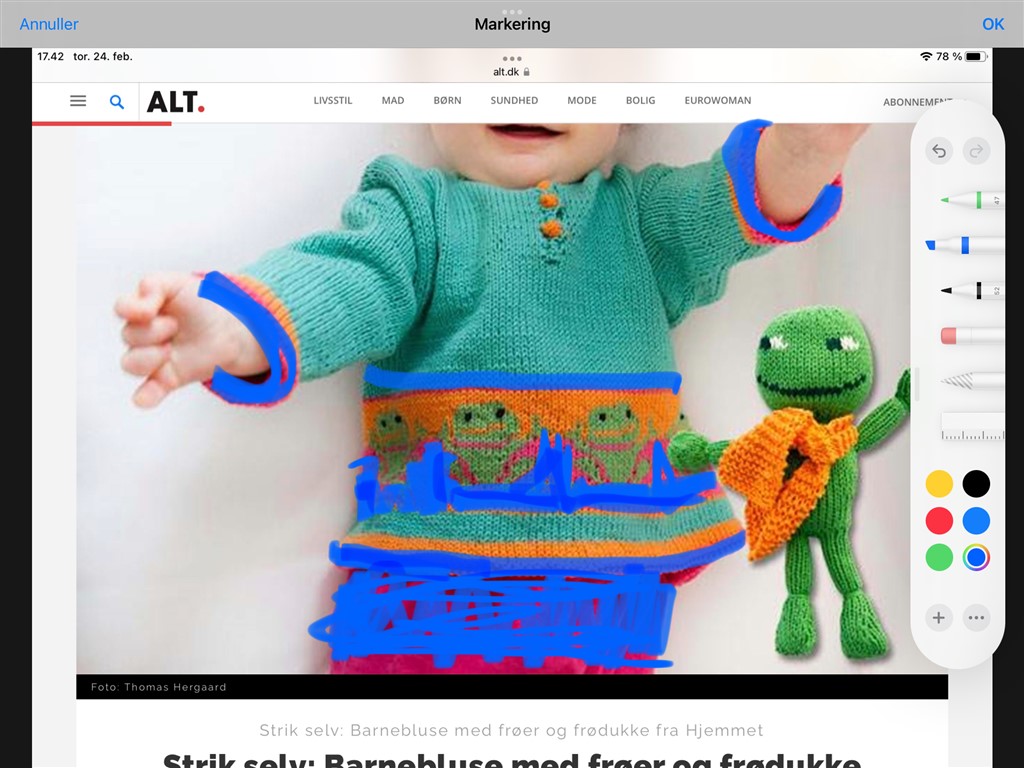 Jeg har forelsket mig i en opskrift på en trøje for længst, og da særligt den kommende far er konservativ vedr. farver, må jeg hellere udskifte pink med en anden farve (det er helt fint med mig!) - men hvilken? Jeg har forsøgt med hurtig billedredigering at få et indtryk af, hvordan det vil se ud med hhv. koboltblåt og meget mørkeblåt, og jeg kan lide begge - men vil gerne høre andres mening eller evt. bud på andre muligheder.