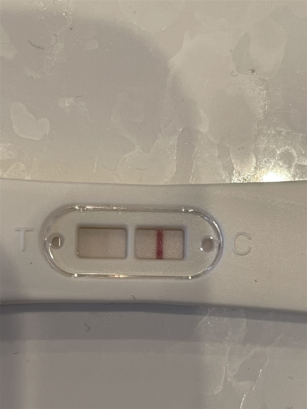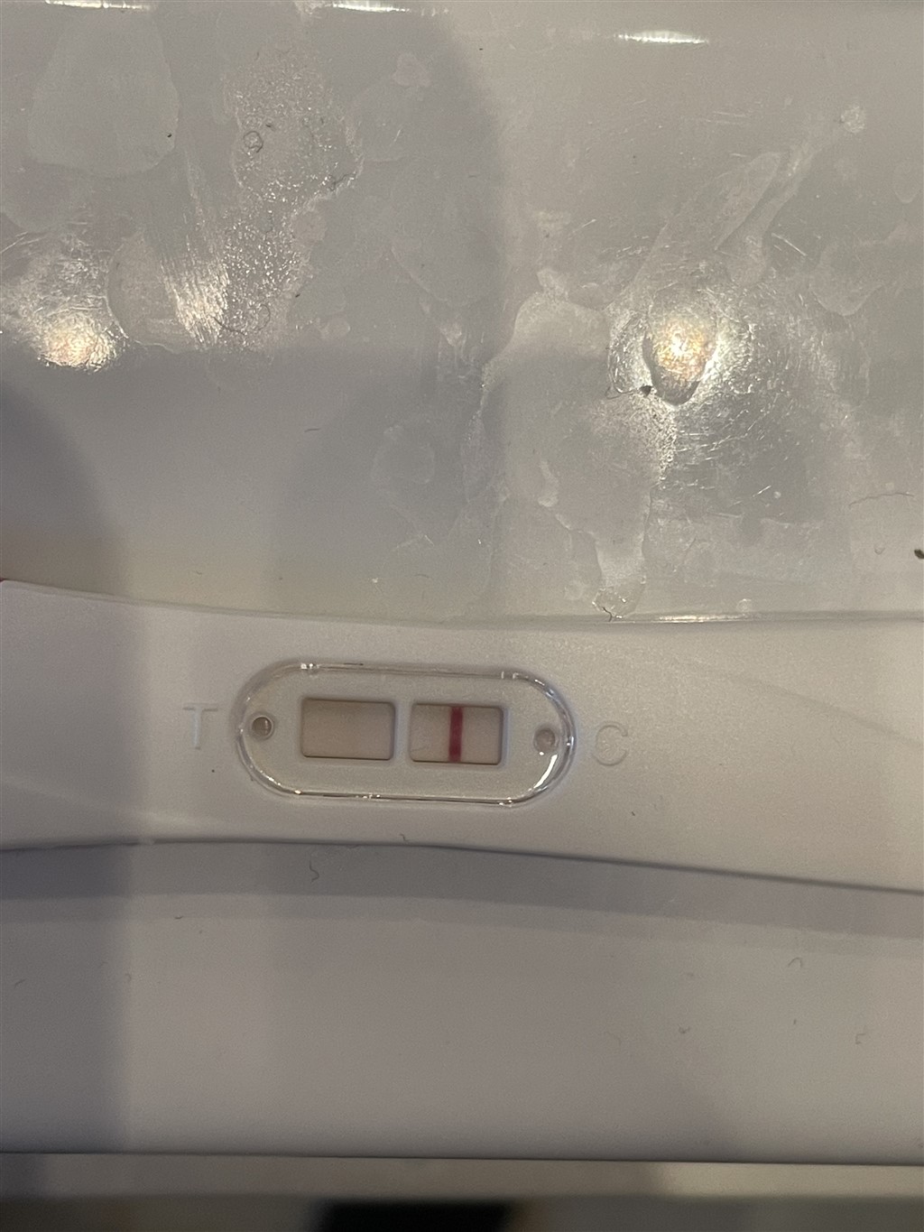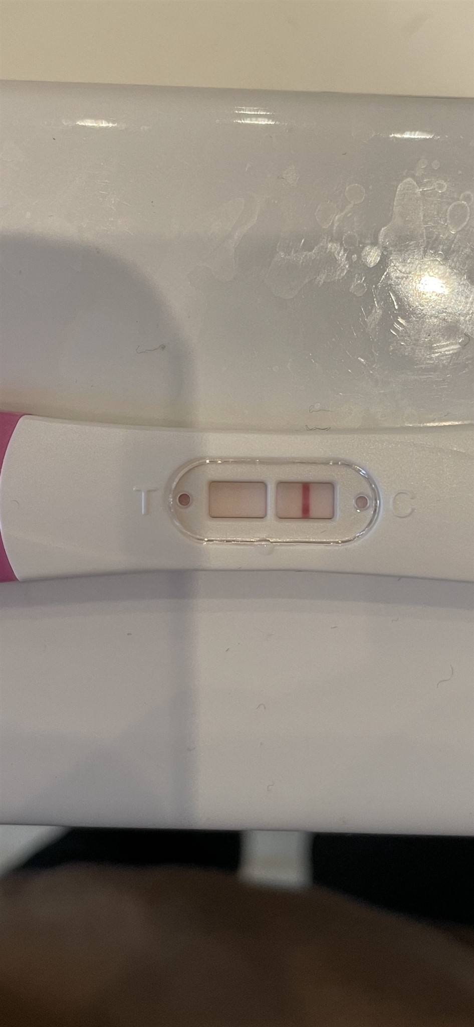 Kan jo ikke rigtig nå at tage en test inden weekenden, hvor jeg er gået over tid. Tænker hvis halsbranden fortsætter at jeg tager en test på fredag alligevel. Men kan i se noget på denne test, synes nemlig jeg fornemmer en meget utydelig streg?