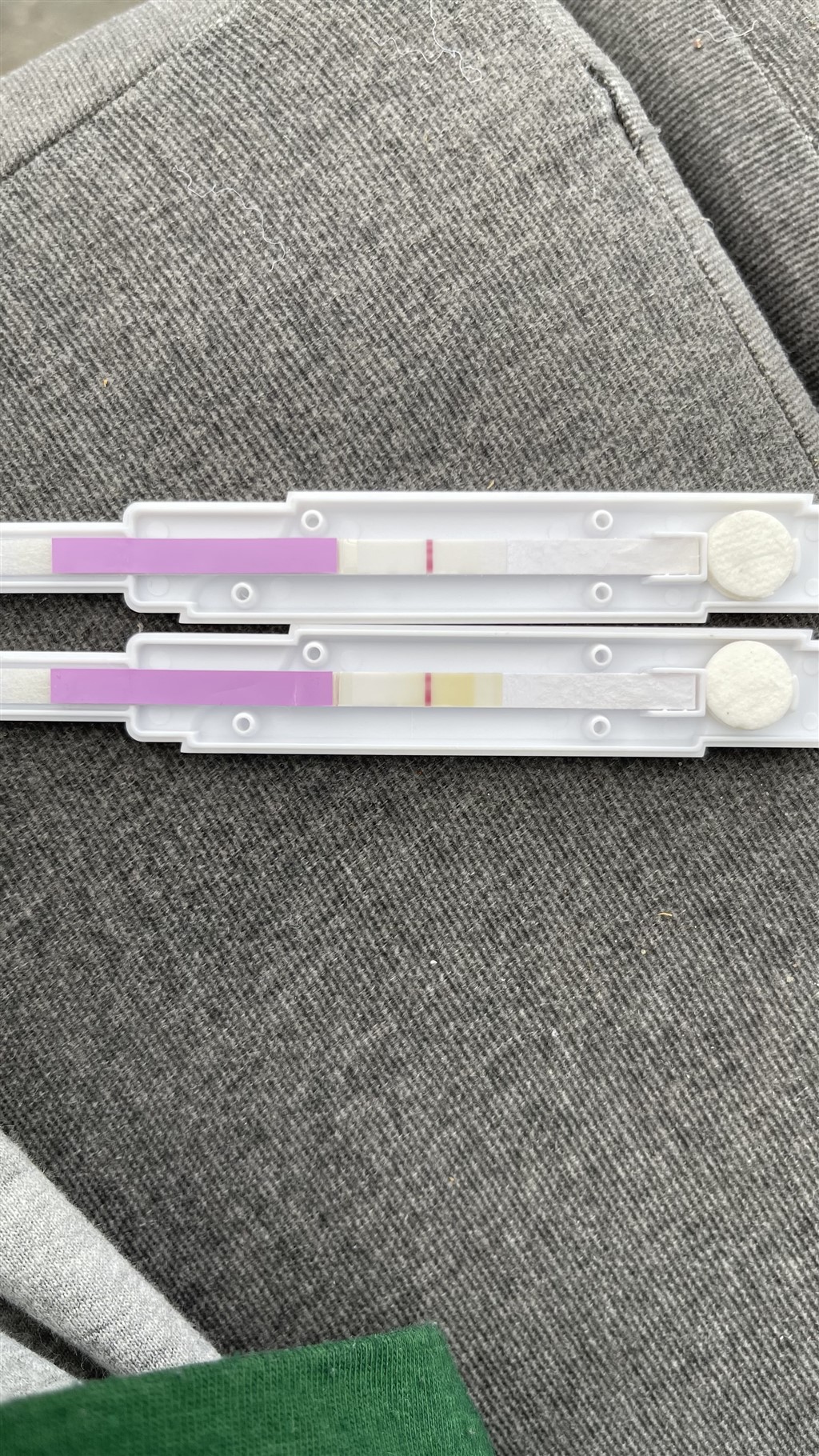 jeg tog i onsdags testen på det første billede. Umiddelbart ser jeg den som positiv, men ifølge mine egne beregninger ville jeg kun være 2+3