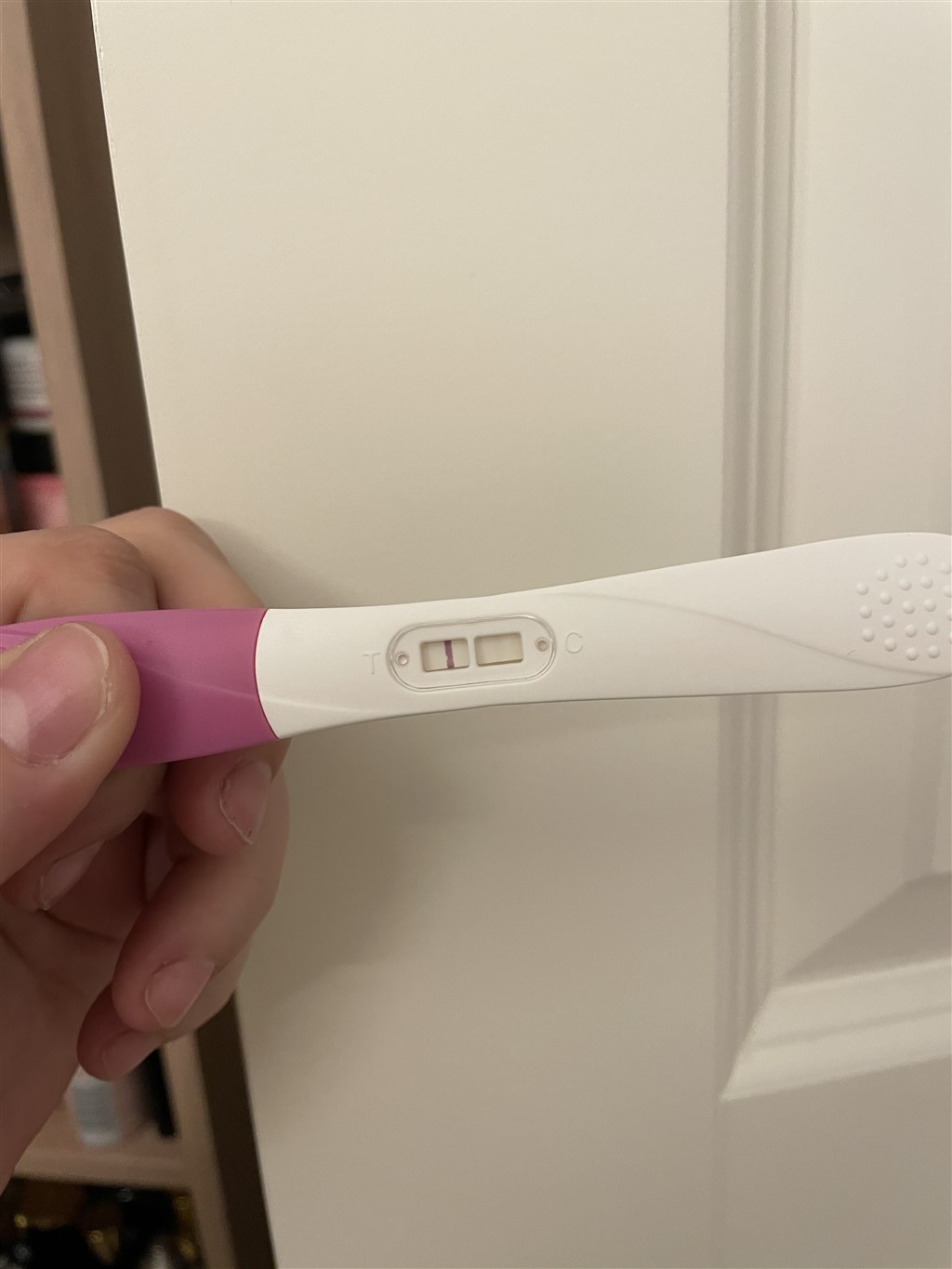 Sådan så min første test 4+2 ud med min datter, så det virker da som om du er gravid. Jeg krydser fingre.