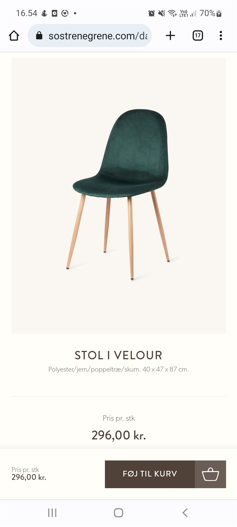 Vi har dem uden “armlæn” dvs dem til 296kr og er virkelig glade for dem. Man sidder rigtig godt i dem. Inden køb prøvede vi andre, dyrere stole, og vi synes man sidder bedre i dem her end de andre vi prøvede, blandt andet fordi ryglænet er noget højere end mange af den type stol. Vi oplever også at gæster siger man sidder godt i dem. De holder sig også virkelig godt, også med små børn, så selv efter flere år, ser de stadig nye ud. Ved køb havde vi kun en enkel reklamation på én, hvor stel ikke passede, men som blev byttet hurtigt og nemt.