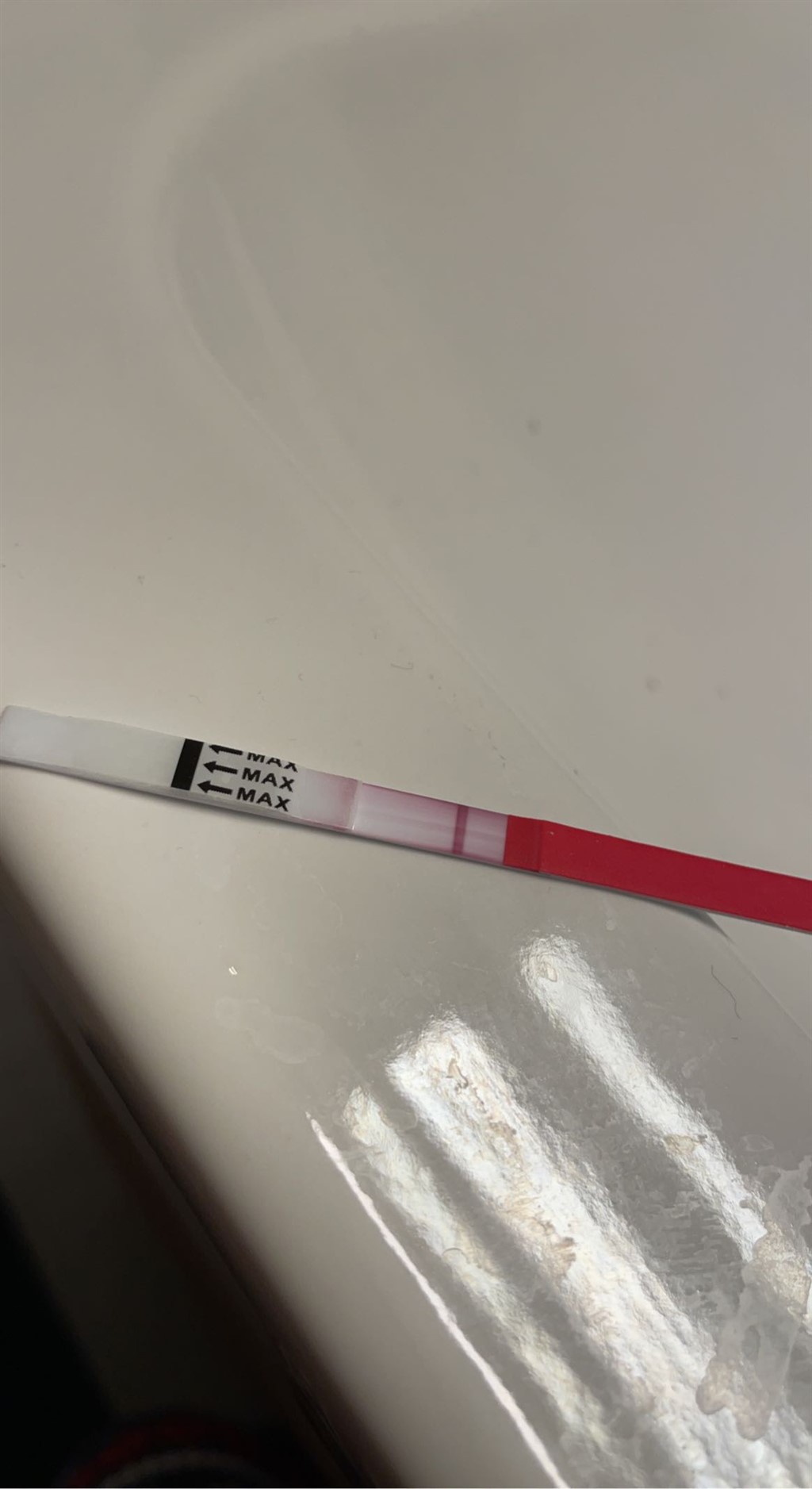 Skulle have haft menstruation i går .. Tog en test som så sådan ud tror i ikke det er en skygge? Kunne ikke få et bedre billede end det her