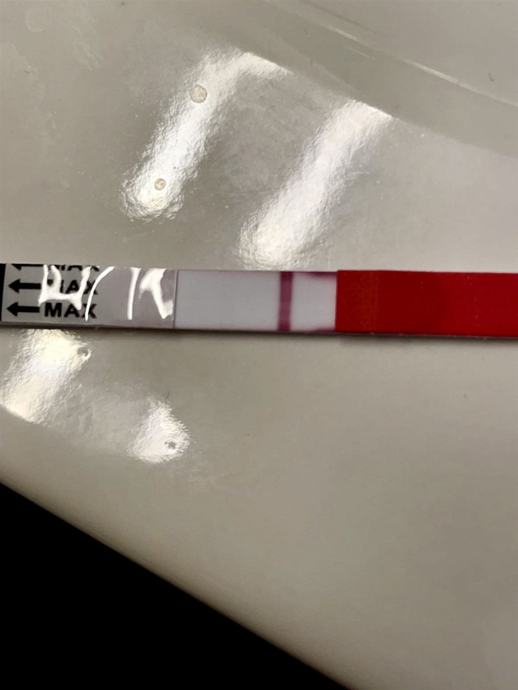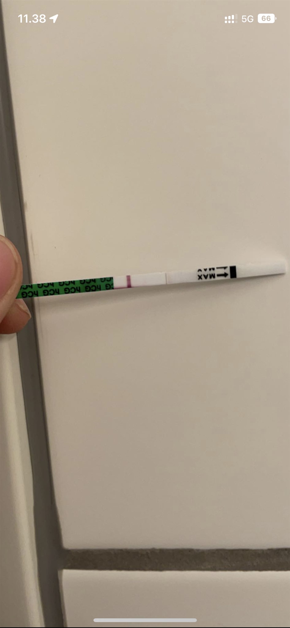 Jeg tog denne test og 2 minutter så så den sådan ud, har vedhæftet et billede. Men 5-10 minutter efter er den umulig at se. Syntes jeg anede en svag streg Er det normalt ?