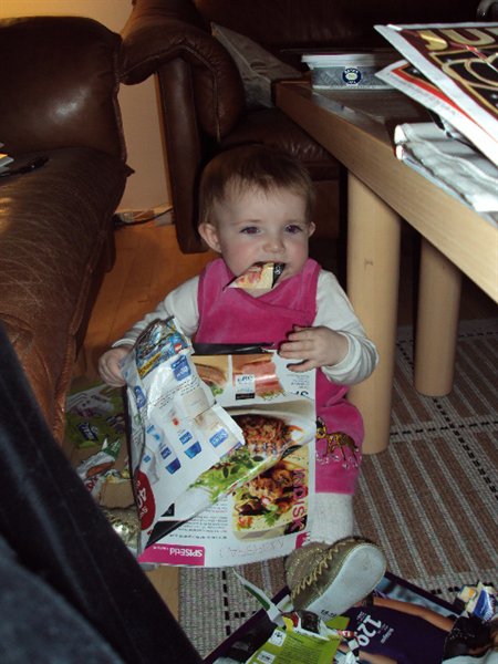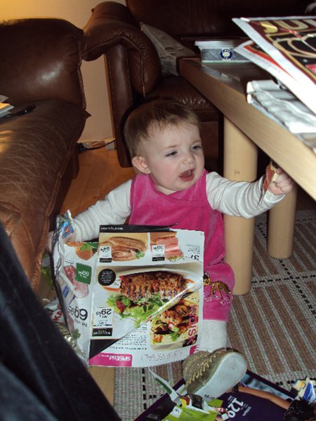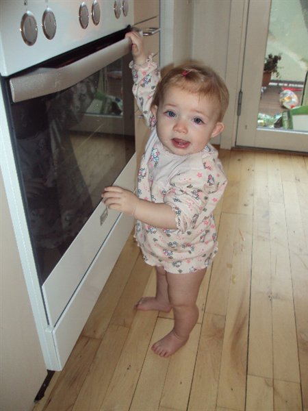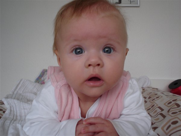 Billede 3: Hun er lige kommet ind fra barnvognen og er i højt humør