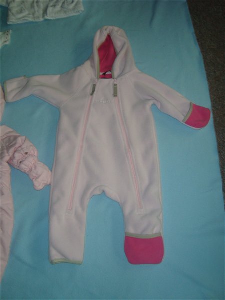 Lækker fleece dragt str. 6mdr, ærmer og fødder kan foldes op så de lukker om hænder og fødder.