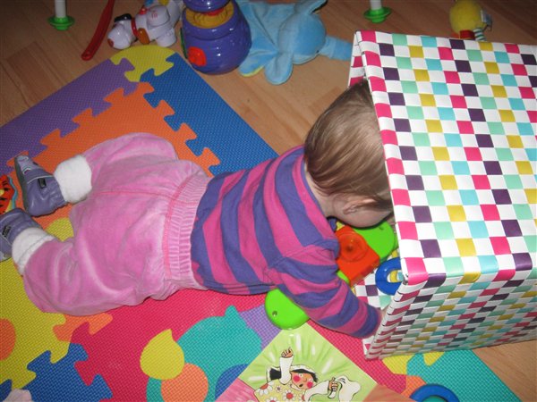 Hun har taget sagen i egen hånd vedr. det grovmotoriske (hun kunne altså ikke vente 2½ mdr. på den fys kom og vidste hende hvordan tingene skulle gøres)