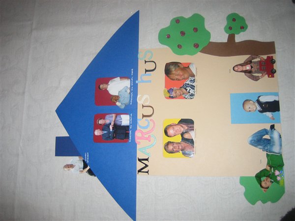 Henne i Bianca's vuggestue har de også alle et lamineret stykke farvet papir med billeder af deres familier. Og børnene bruger dem MEGET, og viser frem og snakker om det.