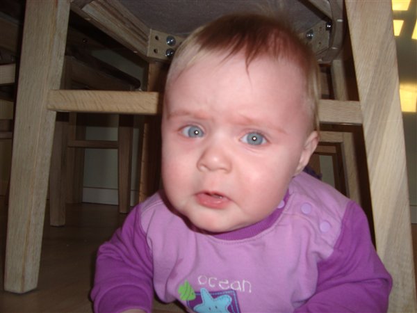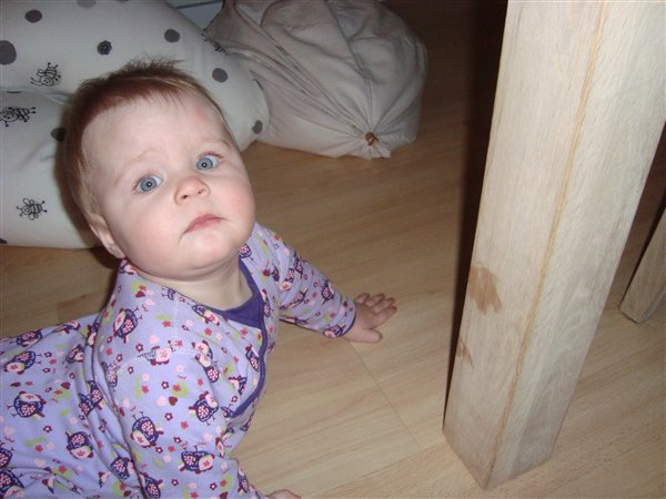 Billede 1- Laura på tur i stuen, men der kom lige en stol i vejen..