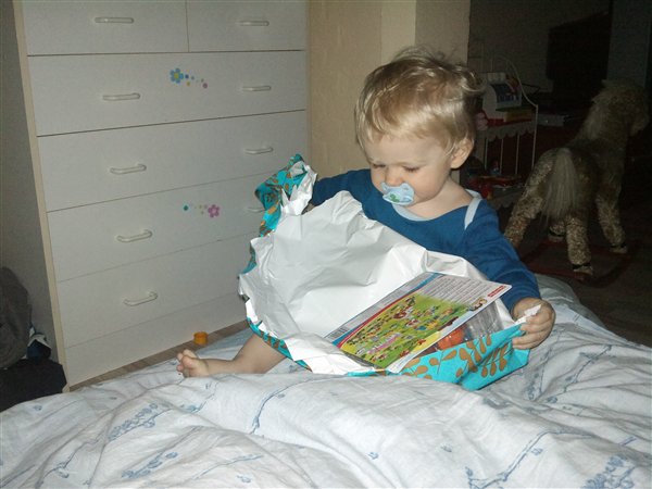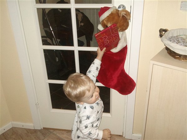 En lille billedserie hvor Liva har fået smarties af julenissen