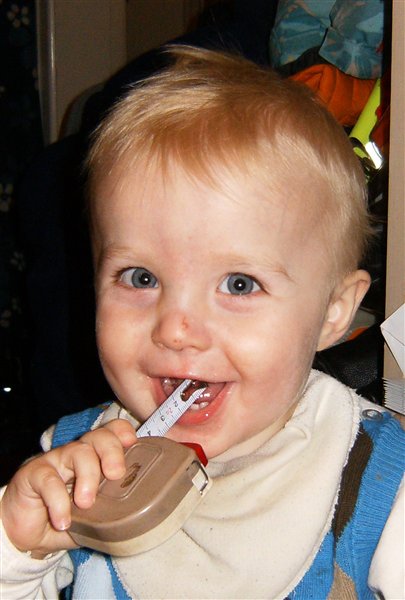 1. Han rente igår rundt med hans målebånd og målte hist og pist, han syntes så også lige hans tunge skulle tjekkes...