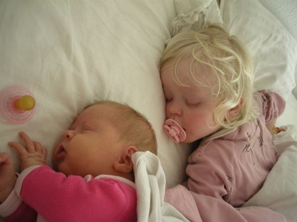 Her er mine sovende tøser............Katten-Rosa er også en pige.