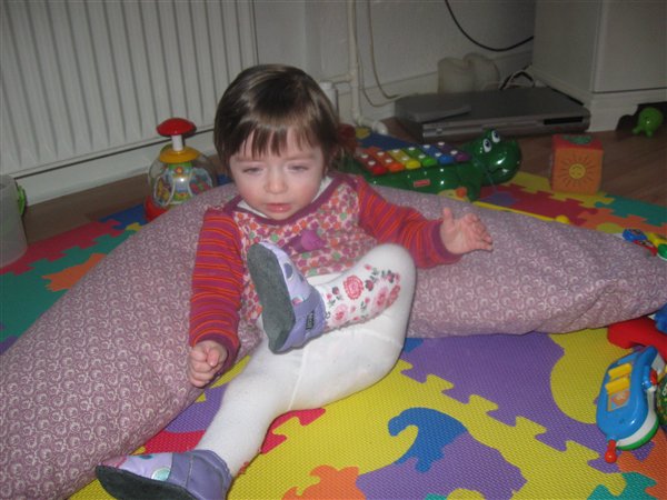 Ja jeg træner jo en del med Malucca... Bla. at kunne sidde selv. og nu er hun faktisk ved at være ret god til det.... Hun vil dog ikke (endnu) sidde med benene i yderstilling.