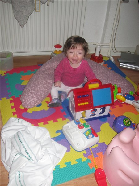 Hendes uro er også blevet så meget bedre, nu er det ikke hverdag hun, hun ligger og køre ryggen frem og tilbage. Hun sparker ikke så ofte sig selv over knæene mere. HUn er helt holdt op med at slå sig selv i hovedet.