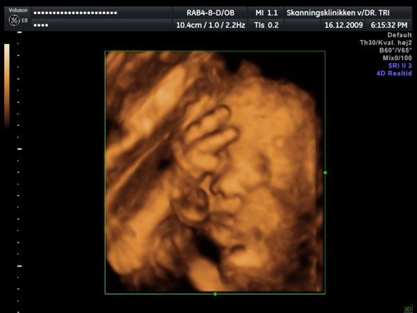 Jeg tror vi talte hun gabte mellem 10 og 11 gange under hele scanningen. Derudover havde hun meget travl med at gemme sig bag sine hænder som hun hele tiden åbnede og lukkede så det så ud som om hun vinkede