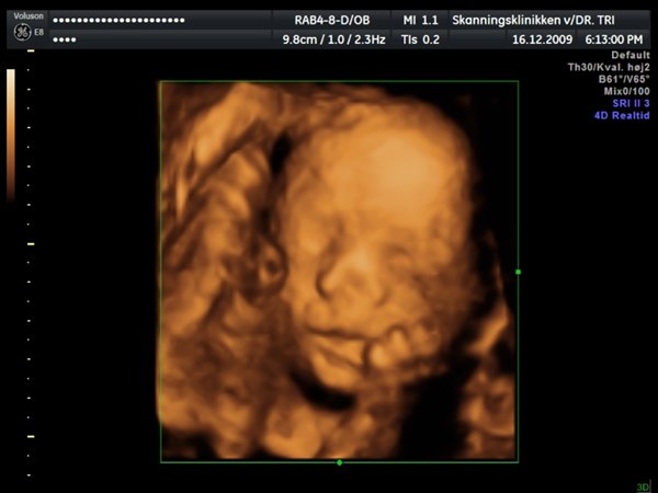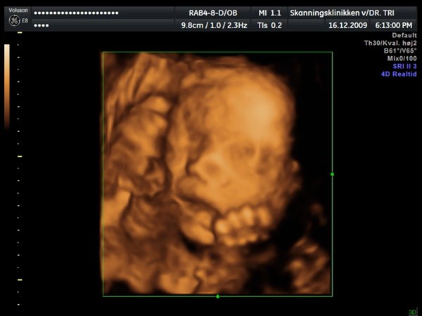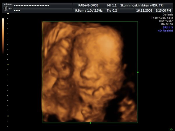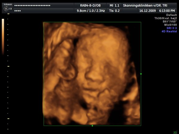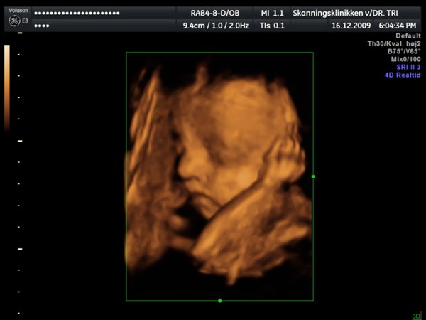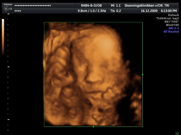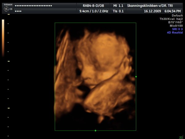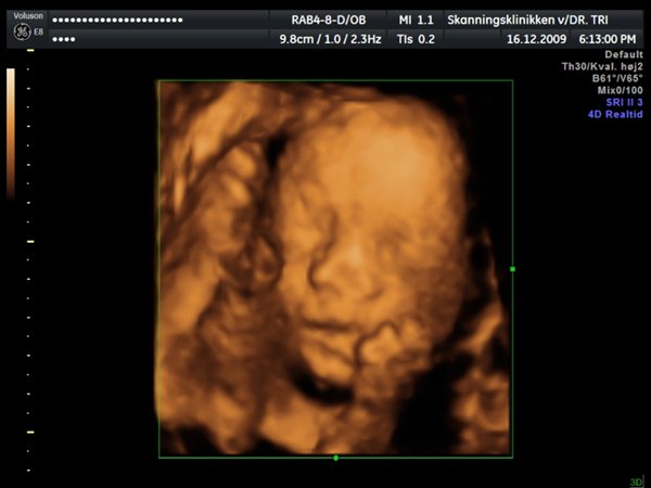 Billederne blev ikke så gode som jeg havde håbet, for lige som sin bror ligger hun meget tæt på moderkagen og med navlestregnen forand hovedet. Men de er ok, vi kan da se at hun ser sund og rask ud og at hun trives derinde.