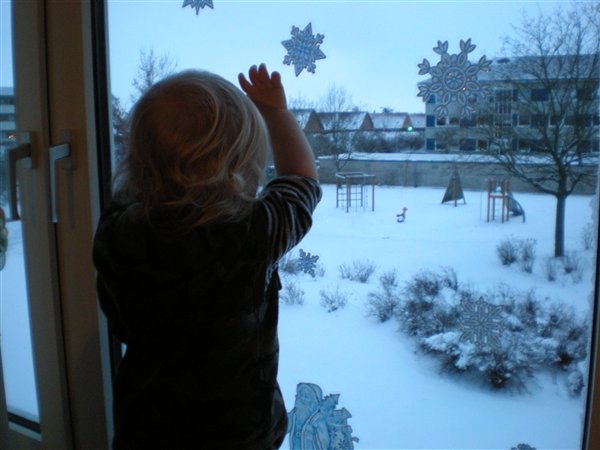 Anna gik rundt med en klump frossen sne i dag..............som om det var en baby.........og sagde, så lille ven, skal vi finde din mor. Hun er så skør, den pige.