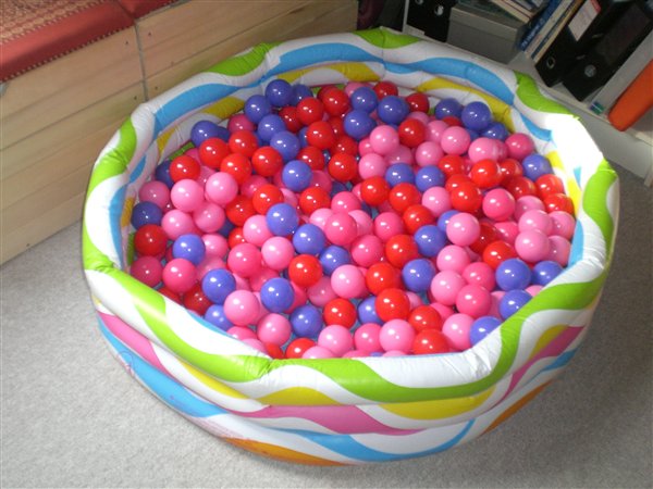 pigerne fik en fødselsdagsgave i morges, 100 af de der plastikbolde som jeg puttede op i weekendsengen og så bøtterne oveni. de havde en fest!! det var bare så sødt