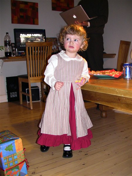 Ja det er bare en rigtig julekjole Håber lidt hun kan passe den næste år igen