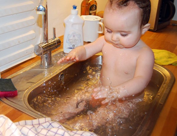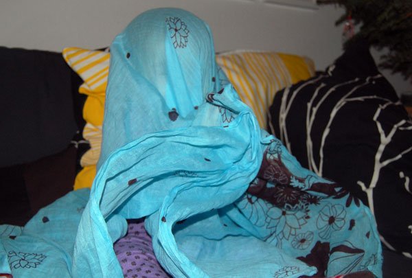 det blå tørklæde over hovedet er en af yndlingslegene lige nu