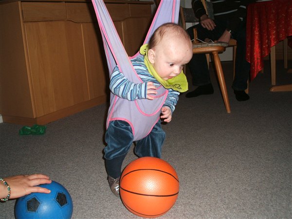 6. I hoppegynge ved farfar og farmor. Fornemmer jeg en kommende fodboldspiller?