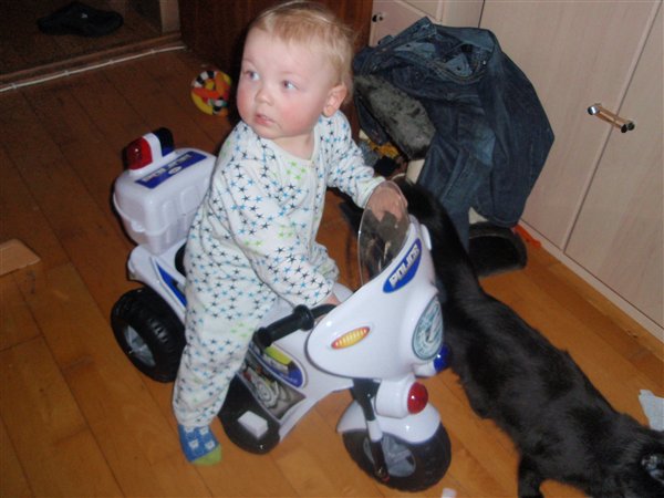 han er nu 1 år og 3 måd idag og vejer 13,6 og er 86 cm høj.
