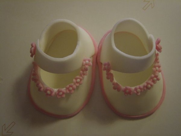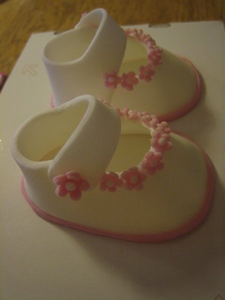 Anasmor skriver: Har en dåbskage her i februar og ville lige prøve en lille sutsko af.. skoen er 5 cm, så det var noget værre pille arbejde men syntes de blev lidt søde.. kh Stinna