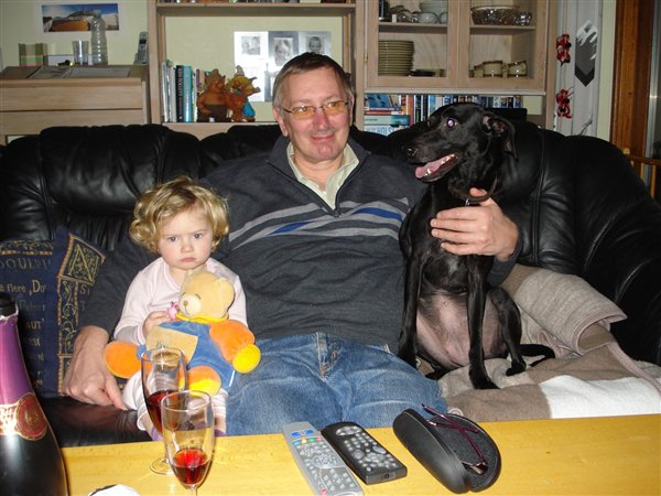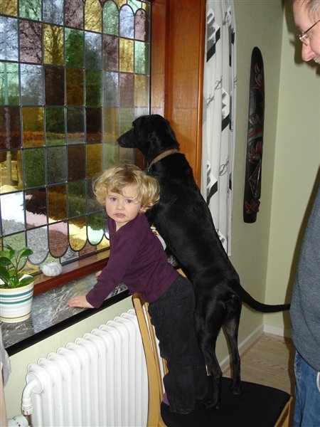 2. Liva, bedstefar og Molly kl. 24 nytårsaften. Molly var bange og Liva vågnede af bragene.