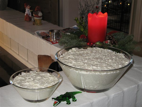 Så var det tid til desserten, ris ala mante. Det kunne Niklas Emil godt lide, men han spiste ikke så meget. Han ville hellere ha noget kedeligt rugbrød kun med smør på (hvad du ønsker skal du få....)