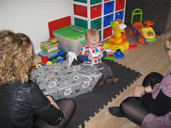 Efter maden fik vi hurtigt rydtet af bordet og så skulle gaverne puttes under juletræet. Min mor slæbte ind og jeg lagde dem under træet. Niklas Emil var lige lidt hurtigere end os så han havde lige fået revet papiret halvt af en gave inden vi nåede at blinke hihi. Han vidste i hvert fald godt hvad det der med gaver går ud på. Dog var gaven han havde gang i ikke liiiiige til ham