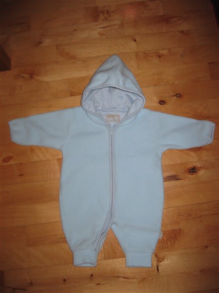 Sød Lyseblå Fleecedragt fra CandyFloss, str. 62. God til barnevognen. Min søn nåede at bruge den én gang da den blev købt for lille. Nypris: 299,-
