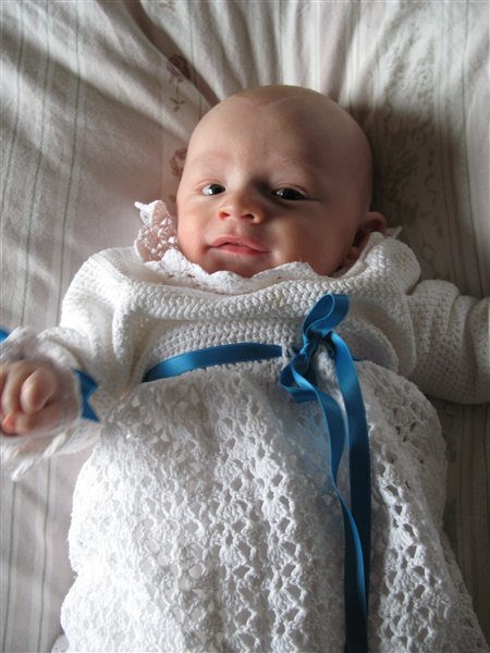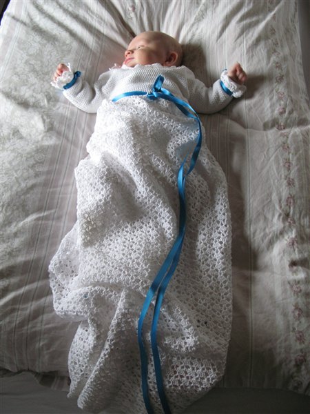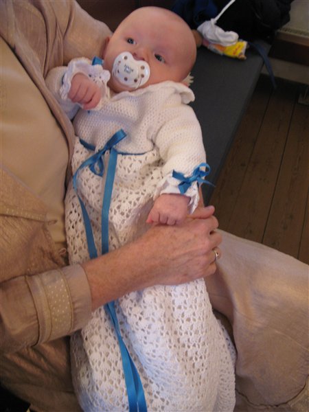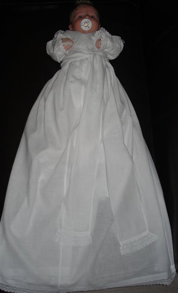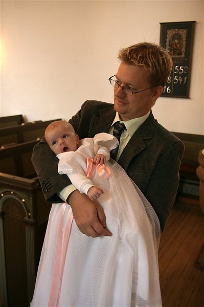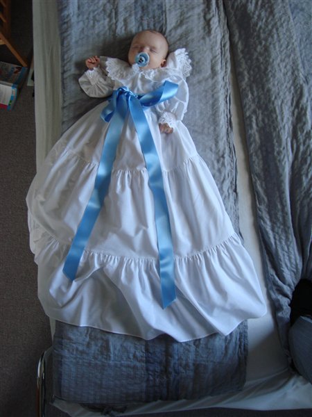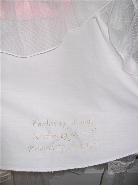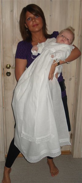 Vi har en familie kjole, som min bror, jeg og Karoline har haft på. Stoffet er fra min mors brudekjole af...
