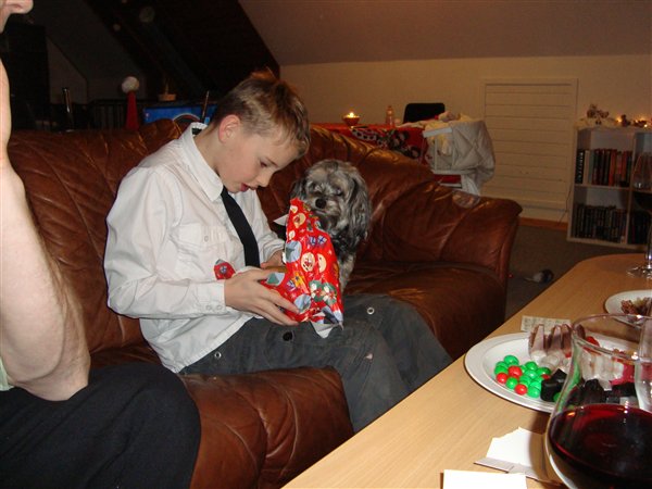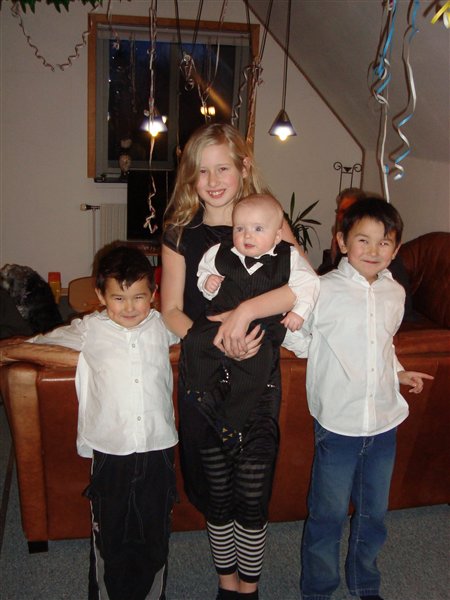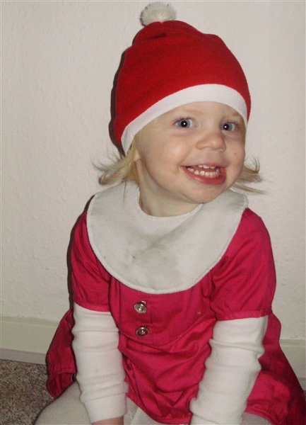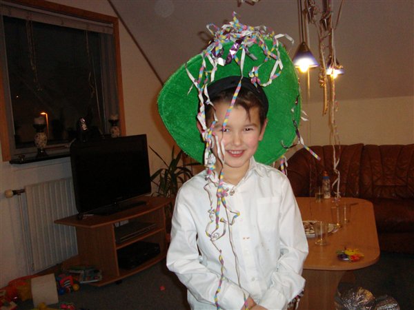 Hi hi og fnis. Det er en nytårshat som mormor havde købt til hende, og som nu er ynglingspåklædningen