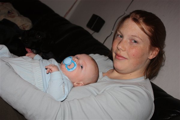 Zette skriver: Flot billede nummer to - er barnet i en pose eller hvad er det?