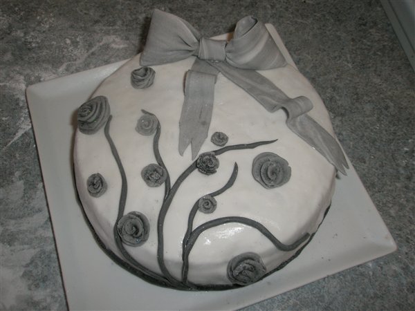 Hehe. billedet er i farver. Kagen er bare lavet i hvid og grå med glimmer på da den var til nytår. Vore køkkenbænk er også grå så kan godt se nu når i siger det at billedet ser ud til at være i sort og hvid