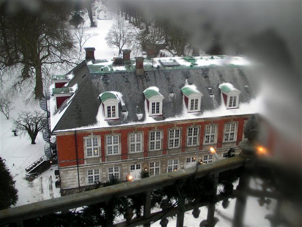 Så går vi lidt rundt på slottet og kigger og går op i tårnet. Der er en fantastisk udsigt selvom det er lidt diset. Carsten er bare ikke god til højder så vi bliver der ikke så længe.