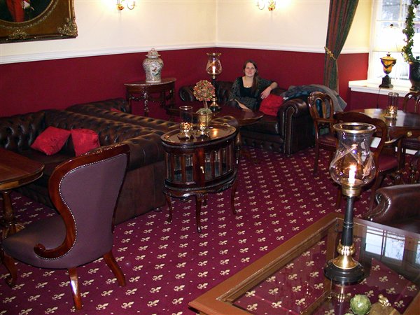 Vi går lidt rundt i parken og hygger os og går så ind i stuen hvor vi varmer os med kaffe og kage.