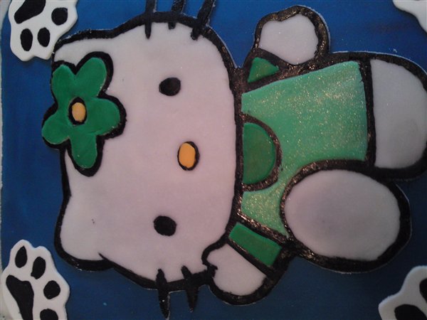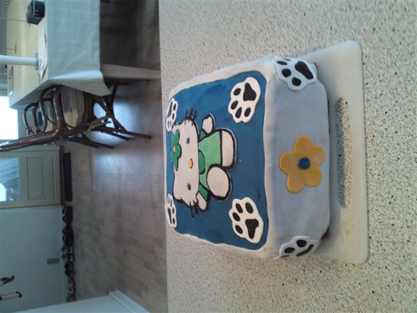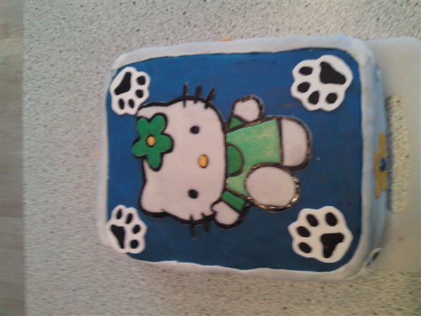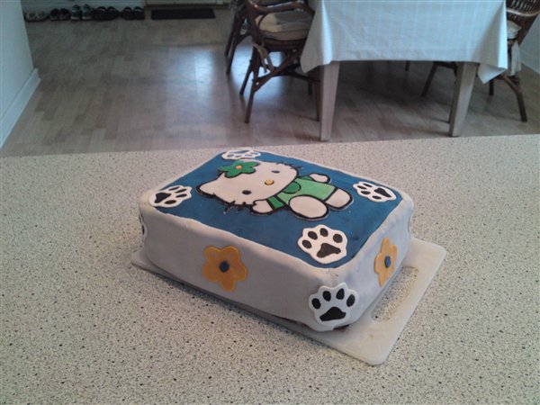 I den anledning skulle der jo laves en STOOOR fin kage og da Emilie elsker katte blev det en Hello Kitty kage