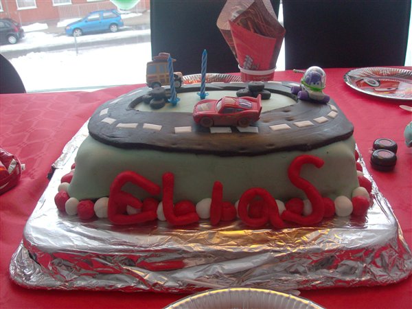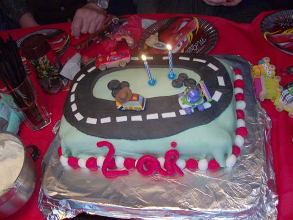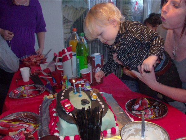 et par billeder af kagen og en dreng på 2 år....