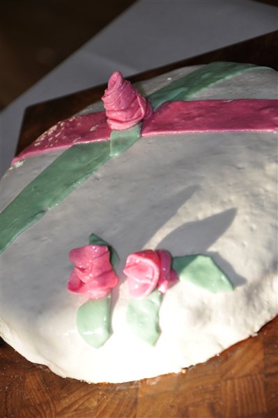 Ja den blev meget våd, så det må jeg lige arbejde på næste gang. Men jeg ved ikke om, jeg vil arbejde med mmf igen, for jeg synes ikke, at det smager så godt igen, så det bliver nok marcipan næste gang tror jeg.