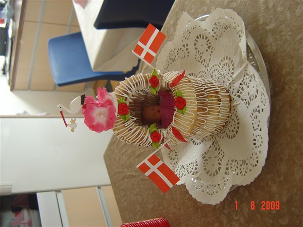 Her har vi altid brugt kransekage,da jeg er bager datter.. Så også denne gang havde min far lavet en vugge..