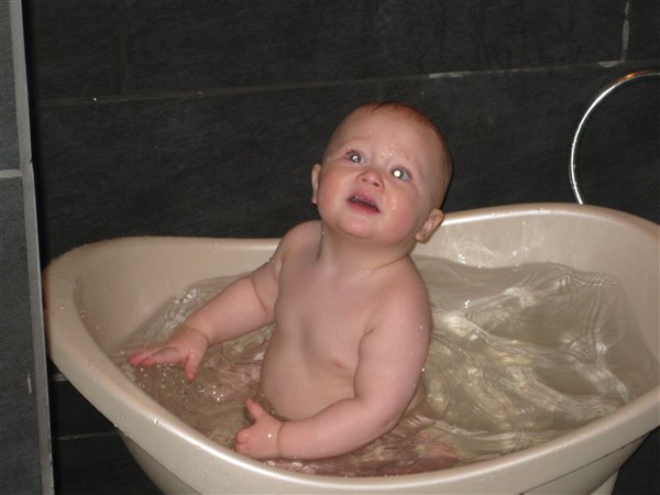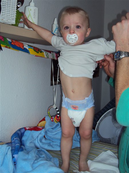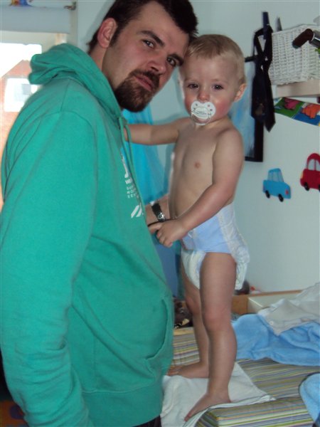 1. Se, jeg er næsten lige så høj som far.. Når jeg står på puslebord. (taget i formiddags)