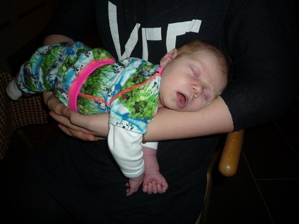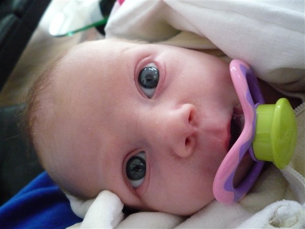 4 uger efter røg vi ind med de 4 S'er (Stafylokok-Skoldet-Skind-Syndrom) Som vi tror kom under hans operation, men det nægted de. Så vi var 6 dage i isolation, ham med drop i hovedet og medicin hver 8 time. Imellem tiden blev det holdt åben med sukker/saltvand. Kom hjem og skulle give ham mixtur i en uge 2 gange om dagen...
