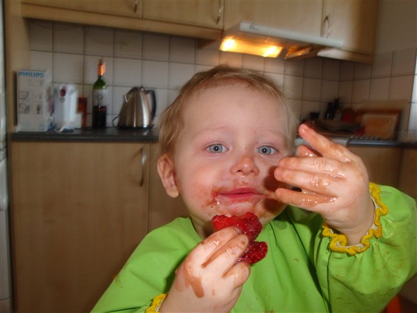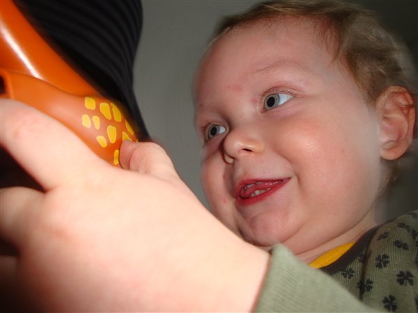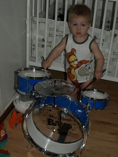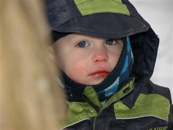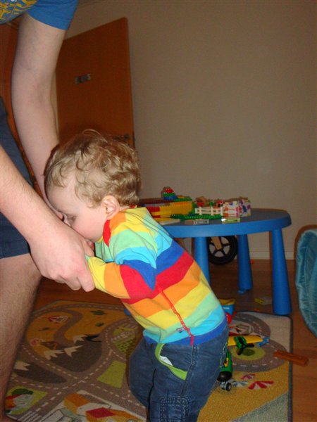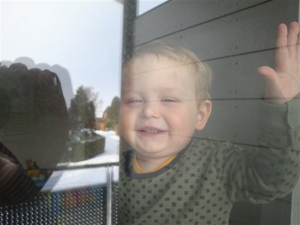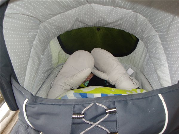 Billede 1 ligger han og sover med mors handsker på, han har været syg hele ugen næsten, så han handsker ligger i dp, så måtte vi jo tænke kreativt
