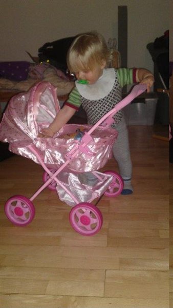 Billed 11: Har fundet søsters barnevogn og puttet dukken
